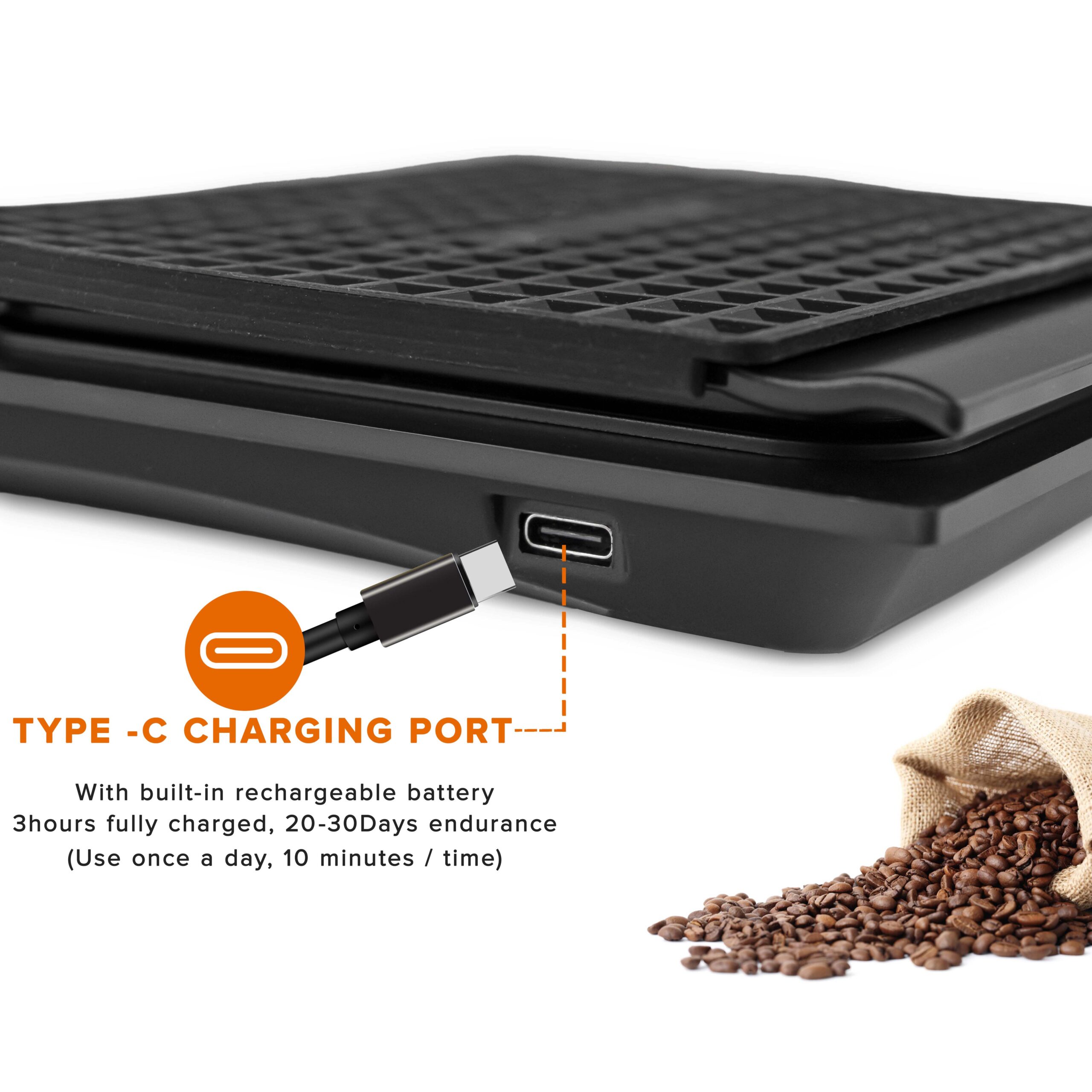 Brewalsa Coffee Bean Measuring Scale with Timer USB Rechargeable & Battery Operated