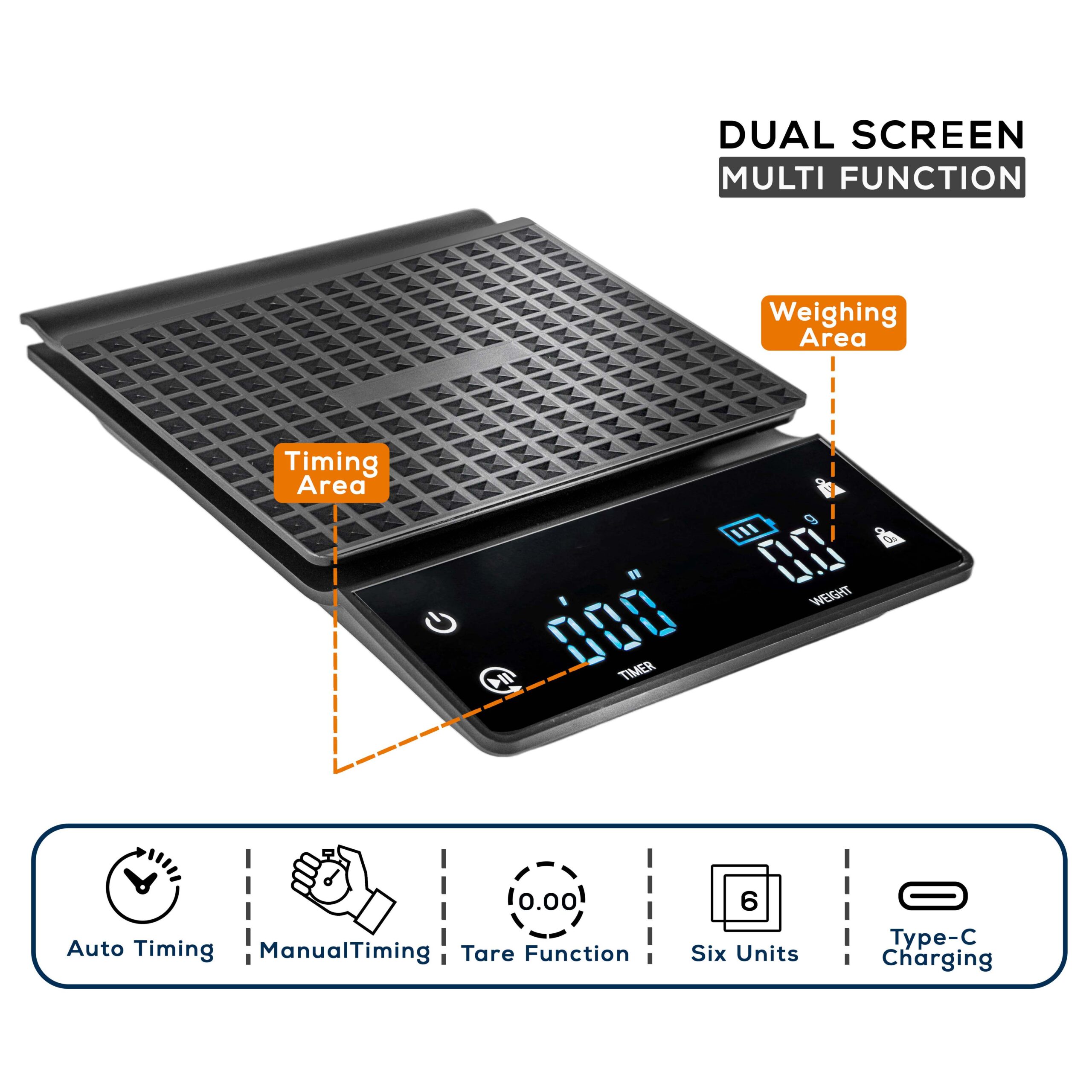 Brewalsa Coffee Bean Measuring Scale with Timer Dual power options, 0.1g precision, and a clear backlit LCD make this the perfect scale for espresso, pour over, and kitchen use.
