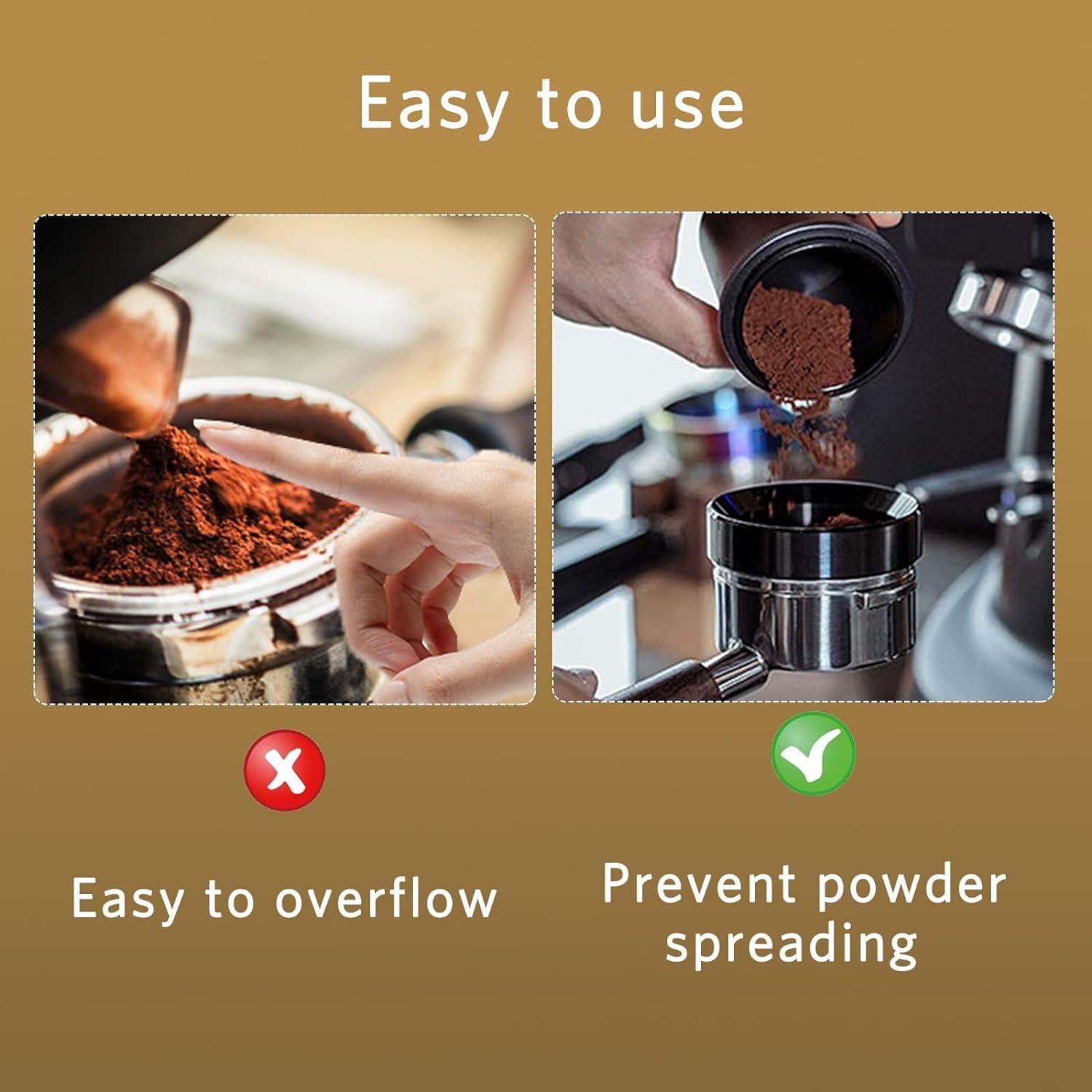 - Minimal Mess: Prevents grounds from spilling over the portafilter during dosing, reducing waste and cleanup time.