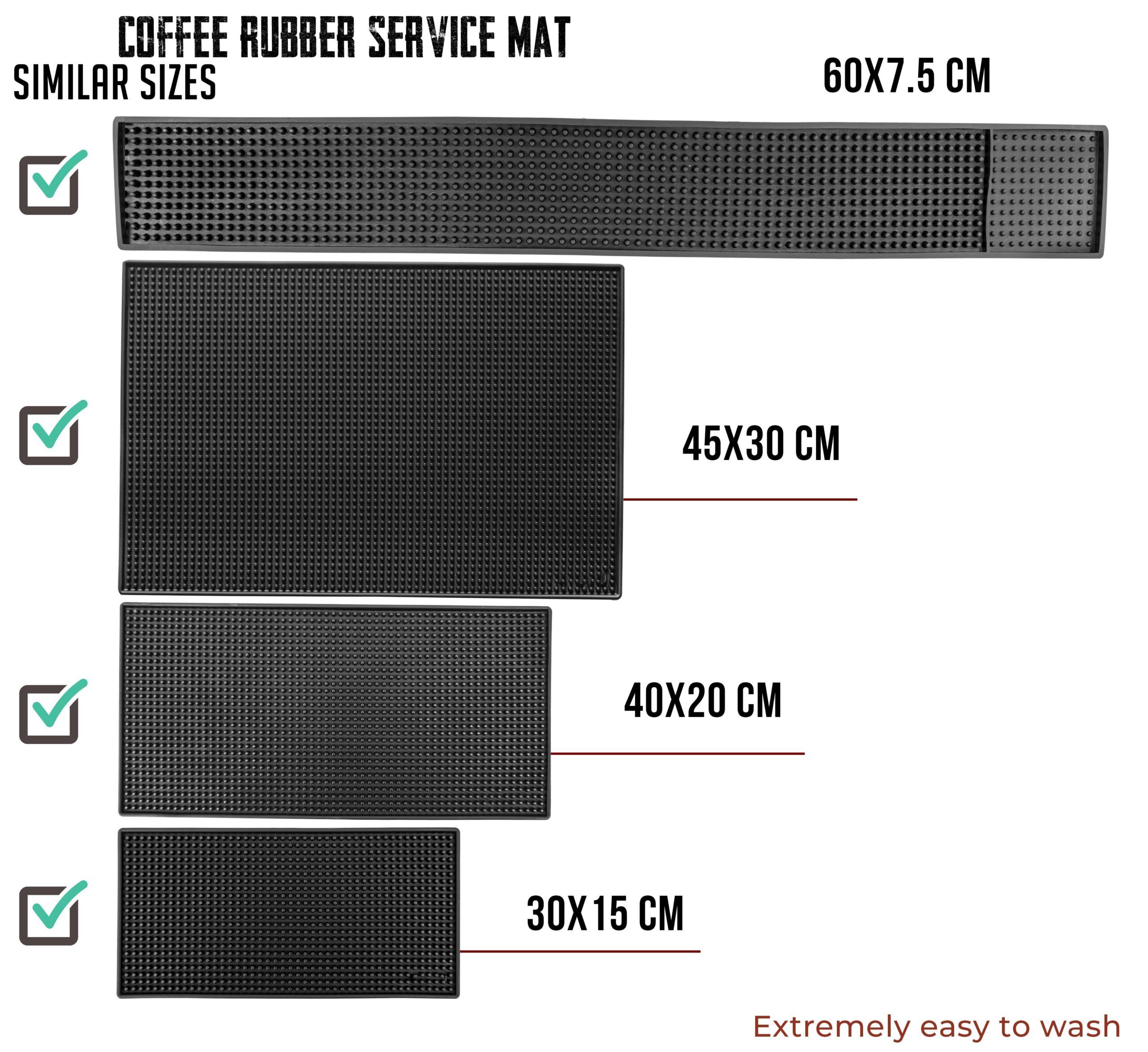 Durable 45x30cm rubber spill mat designed for barista stations and coffee setups. Non-slip, easy to clean, and perfect for catching spills and protecting surfaces.